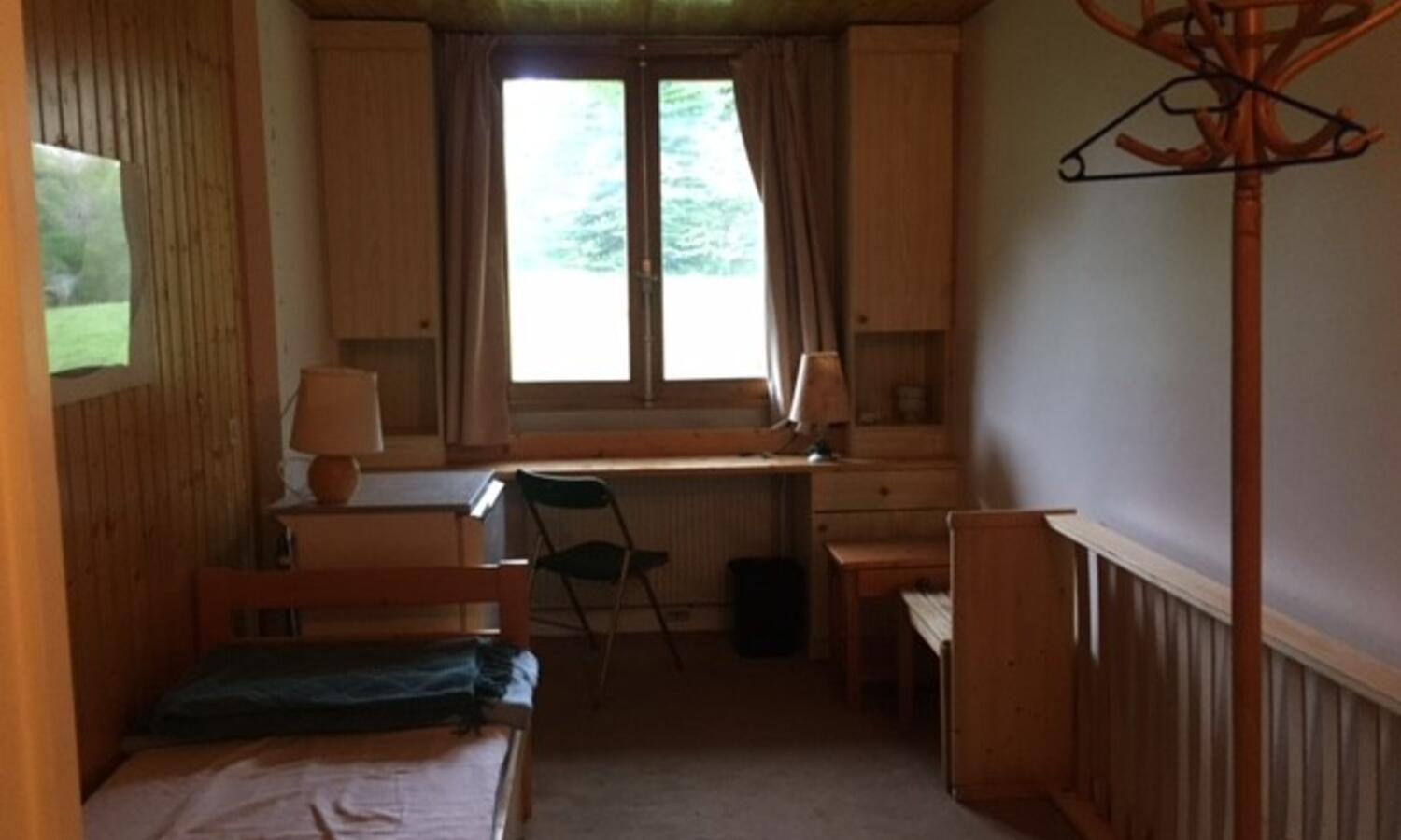 The studio has a single bed and pull out bed in the living area but sadly no cooking facilities so is usually rented by chalet staff or people who have their meals provided by work, there is a fridge and kettle in the living area with a table and chairs.