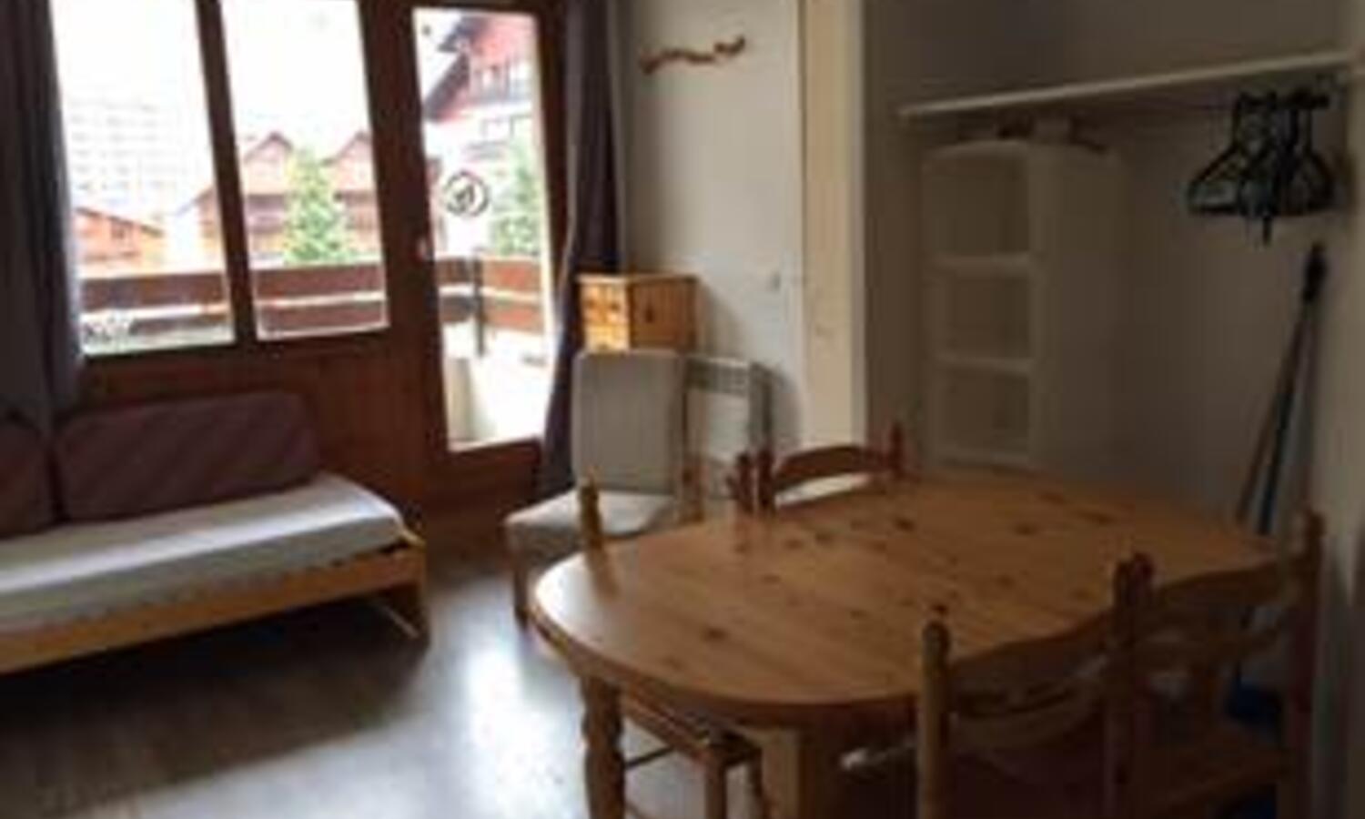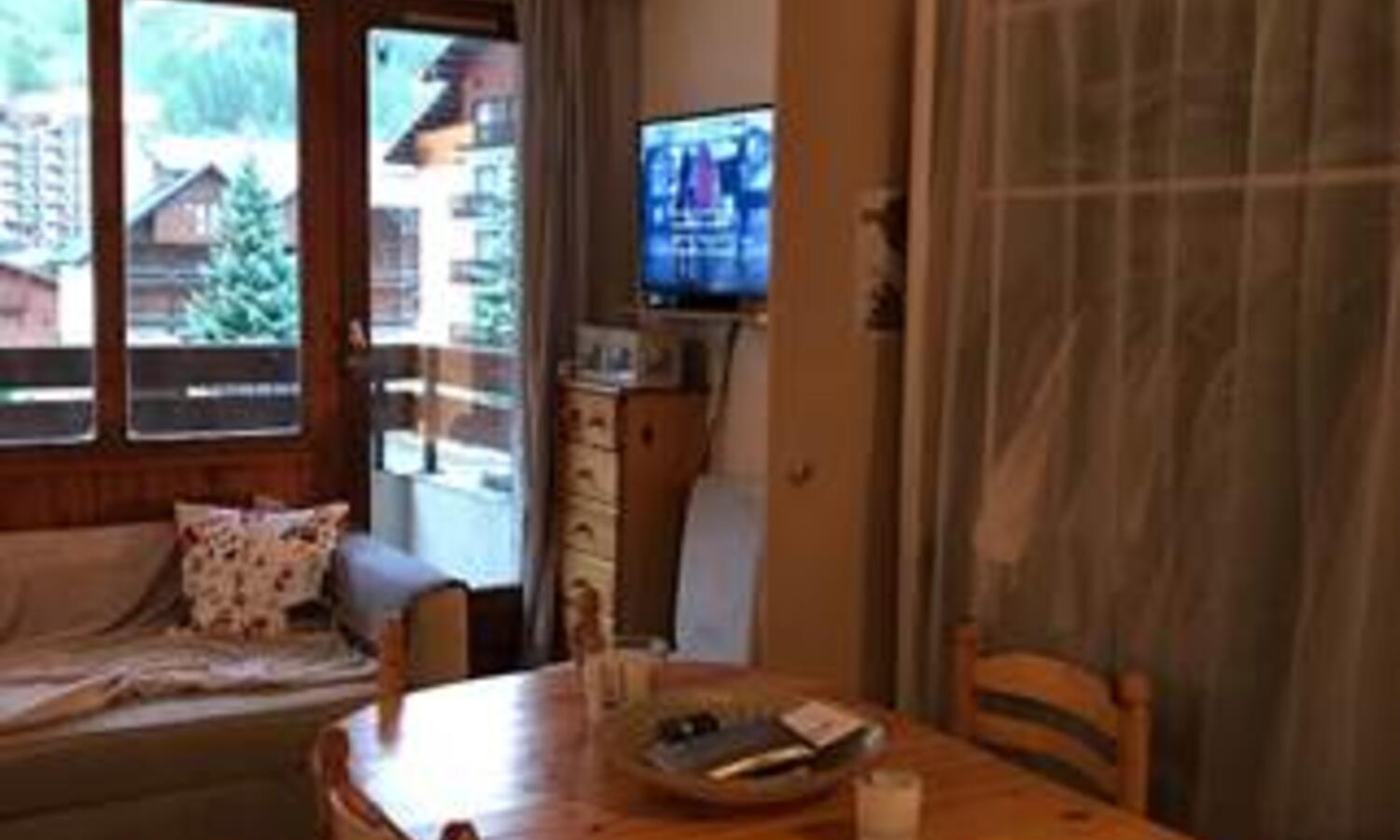 Very well equipped one bedroom apartment on the first floor of this popular residence. The apartment features a spacious kitchen with oven, dishwasher, hob, fridge and plenty of storage with a dining table seating 4/6. The living area has a comfortable double sofa bed with a door onto the East facing balcony which has fantastic views up towards the Solaise mountain and beyond.