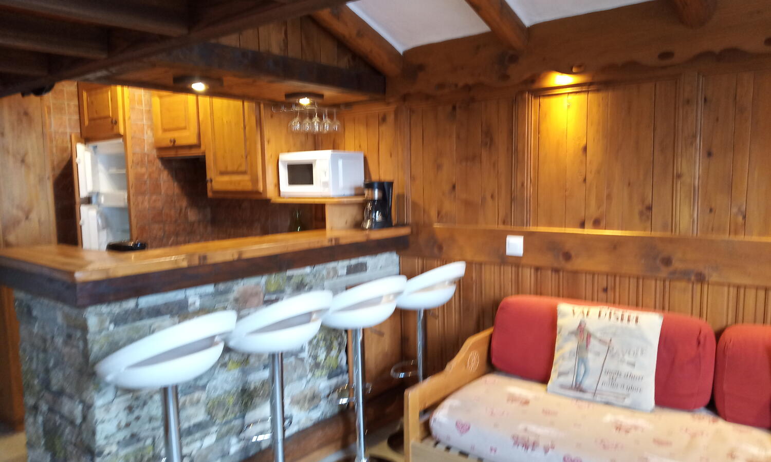 Charming and very well equipped studio mezzanine apartment just 5 minutes walk from the centre of Val d’Isere and 150m from the main Bellevarde lifts and piste. This beautiful apartment has been incredibly well thought out with plenty of storage and charmingly decorated in traditional mountain style. It is on the top floor of this popular residence and has stunning views over the village and surrounding mountains.