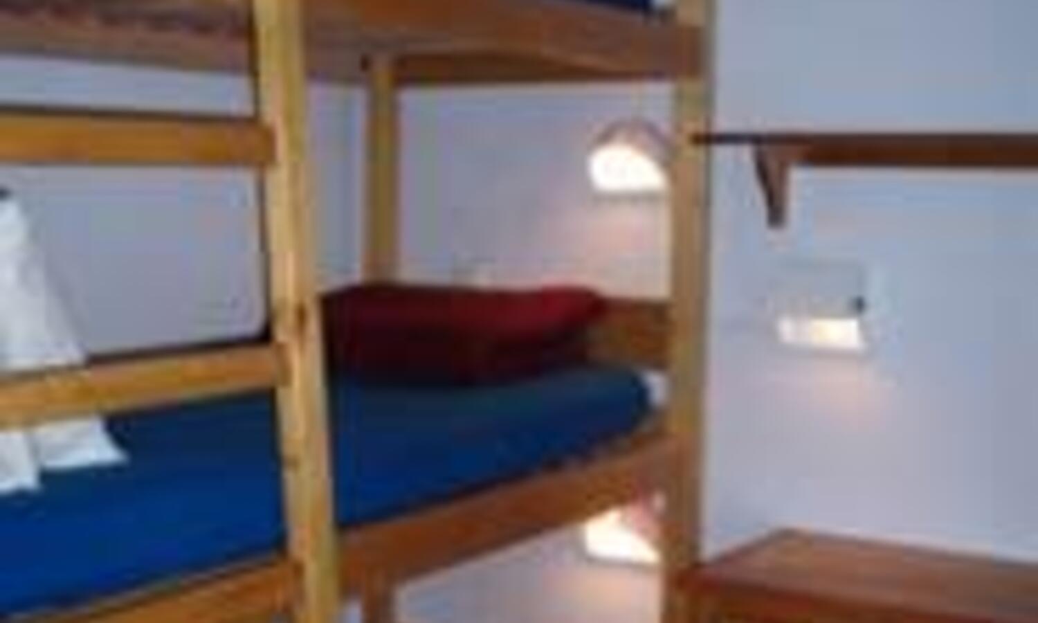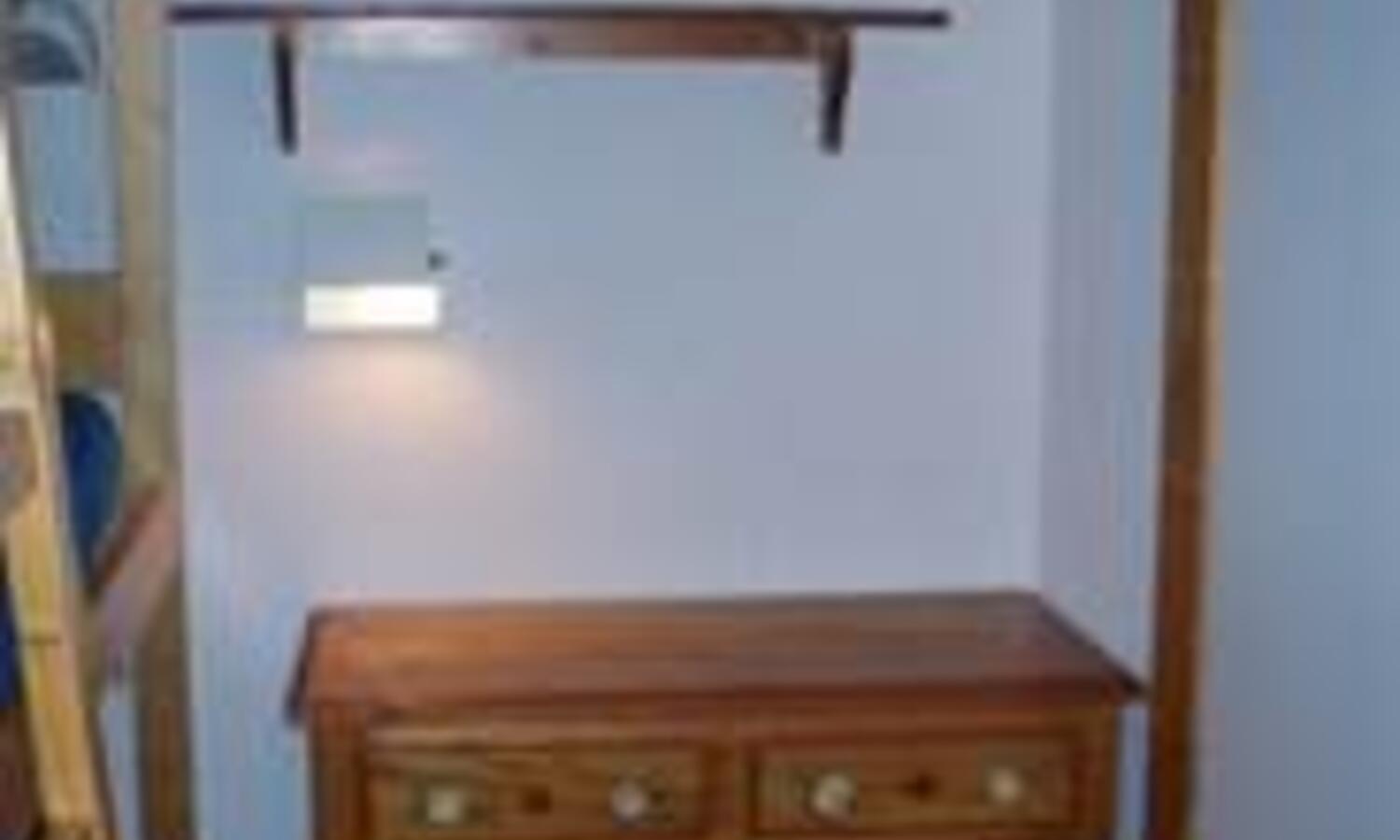 The apartment has a good sized bedroom with a bunk bed wardrobe and chest of drawers and the living area has two single sofa beds with a pull out bed. There is a large south/west facing balcony off the living room which is great for spring sunshine. The living/dining room has a dining table for 4 people and a serving hatch into the kitchen. The kitchen is well equipped with a dishwasher, oven, hob, toaster, kettle and fridge.