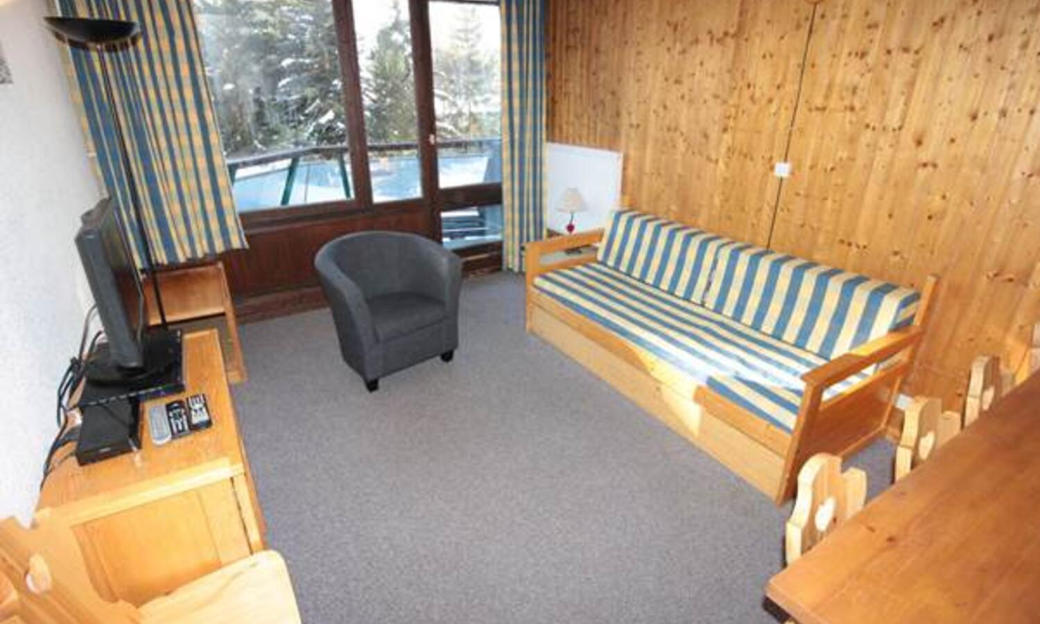 This is a really spacious one bedroom apartment just a short walk from the lifts in la Daille with under cover access to the shops, bars and restaurants.