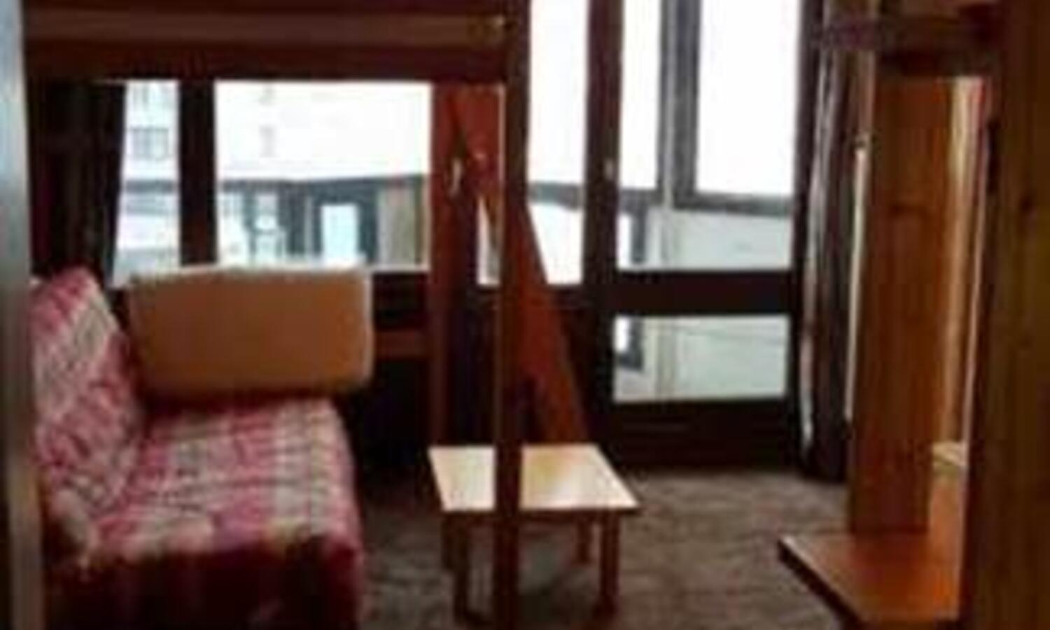 Great ski-in / ski-out studio apartment in the heart of la Daille. This comfortable studio apartment has a bunk bed in the entrance so the living area can be separate if required. The living area has a double mezzanine bed with a double sofa bed below which is perfect for occasional guests. The fully equipped kitchen has a full sized oven, four ring hob, fridge, dishwasher and kettle. There is a good sized dining table which can seat 6 people and a comfortable fold out chair.