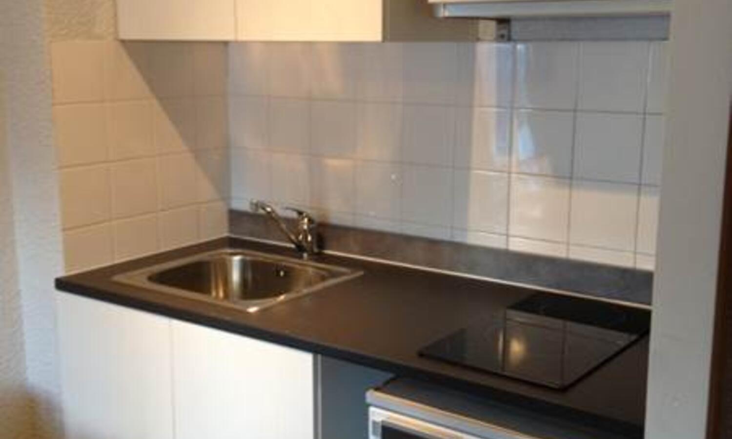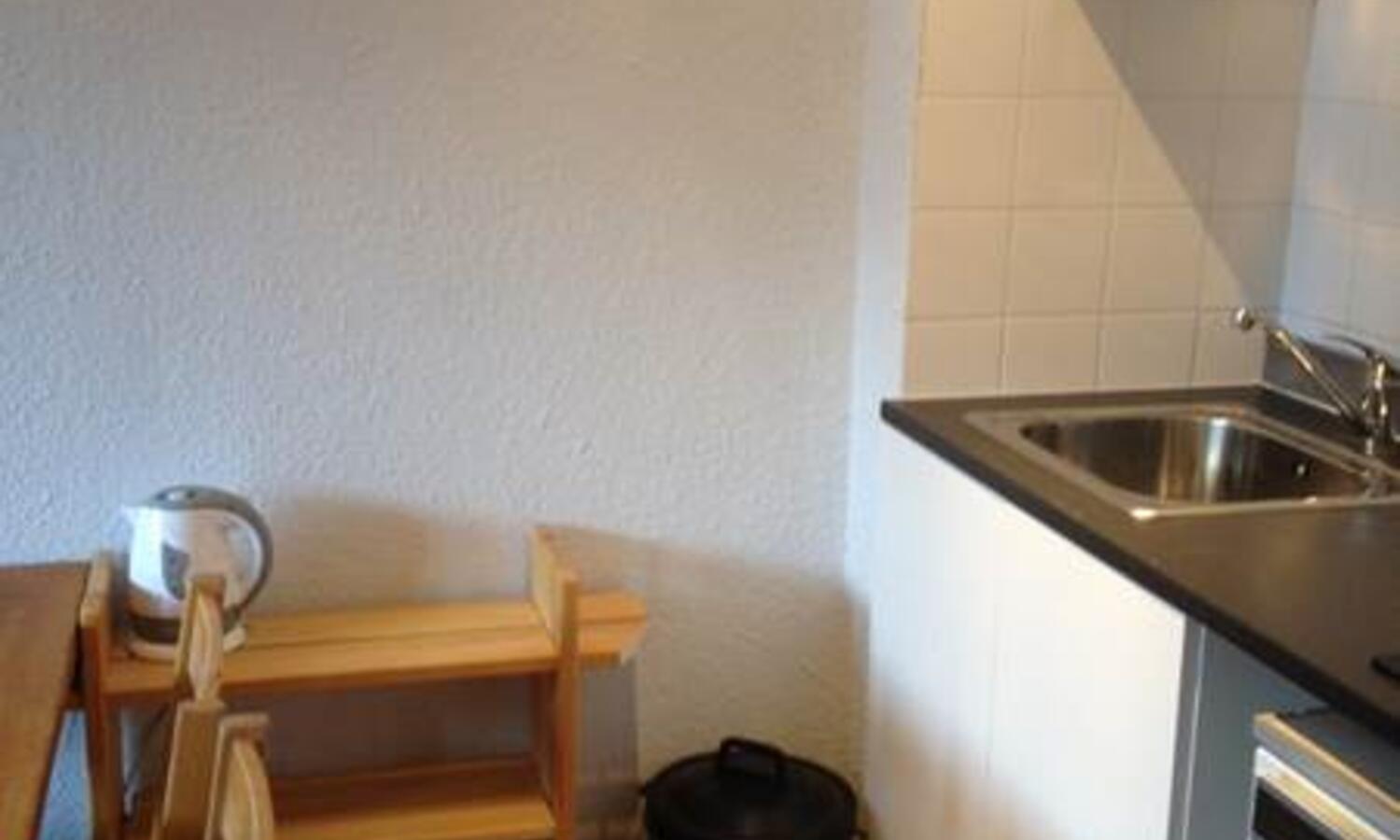 This clean and modern studio cabine is perfectly located just 200m from the centre of Val d’Isere and 400m from the main Bellevarde and Solaise lifts. This sweet apartment has been recently refurbished making it clean and modern with an open plan living / kitchen / dining area. The living area is bright and airy with a great south facing balcony which has fantastic views over the mountains and village, there is a single sofa bed with a pull out bed with legs, a dining table seating four and a fully equipped kitchen with hob, oven, fridge and kettle.