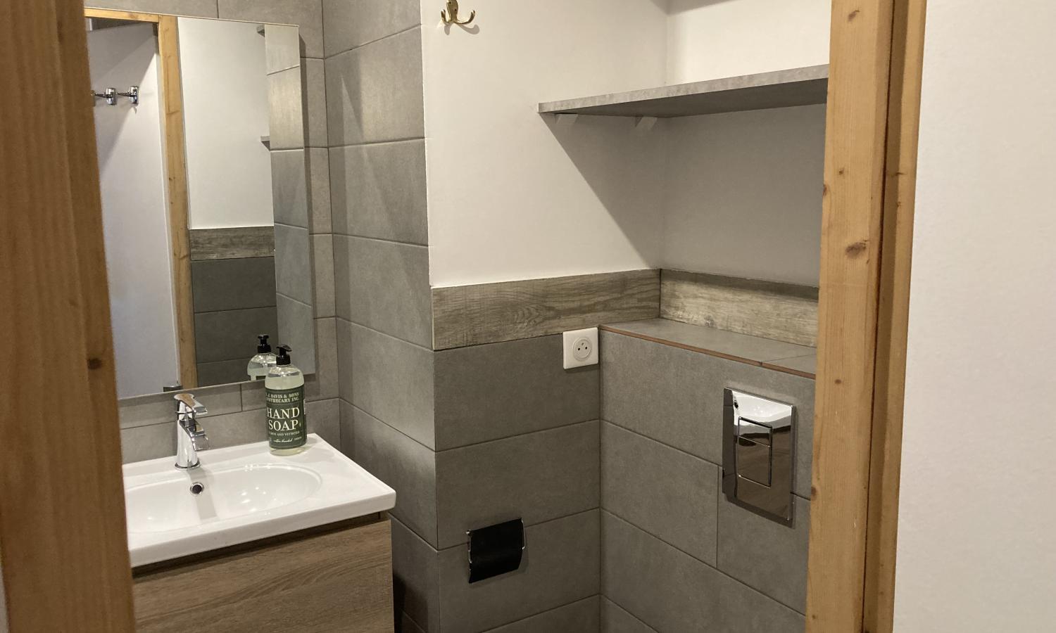 There is a small bedroom with a bunk bed sleeping two people, cupboard and window. The bathroom has a bath with shower attachment, basin, WC and towel rail. This recently redecorated apartment is in a fantastic location close to the centre of Val d’Isere and perfect for a group of friends.