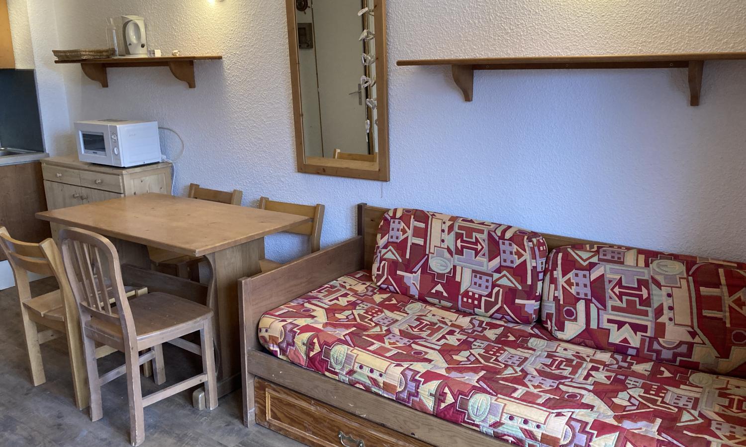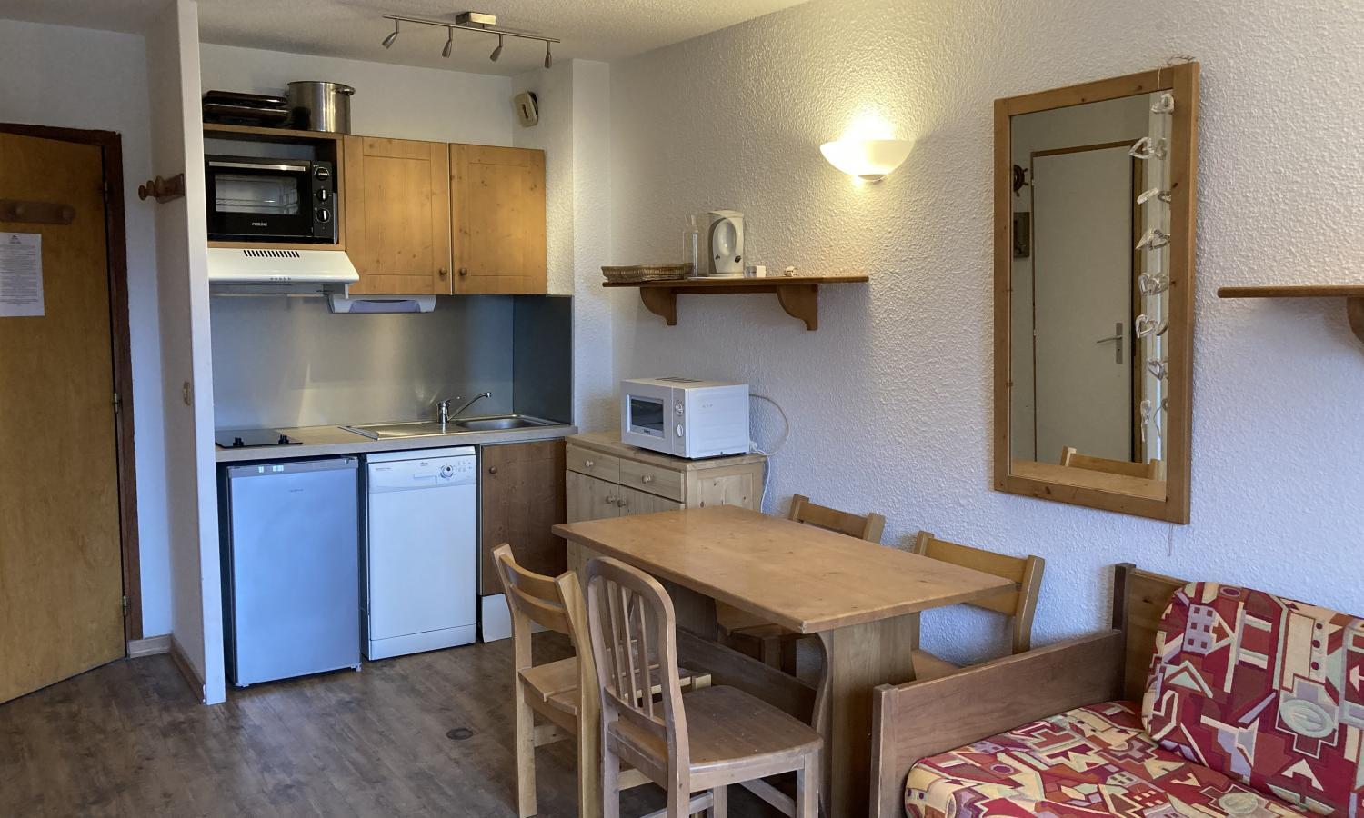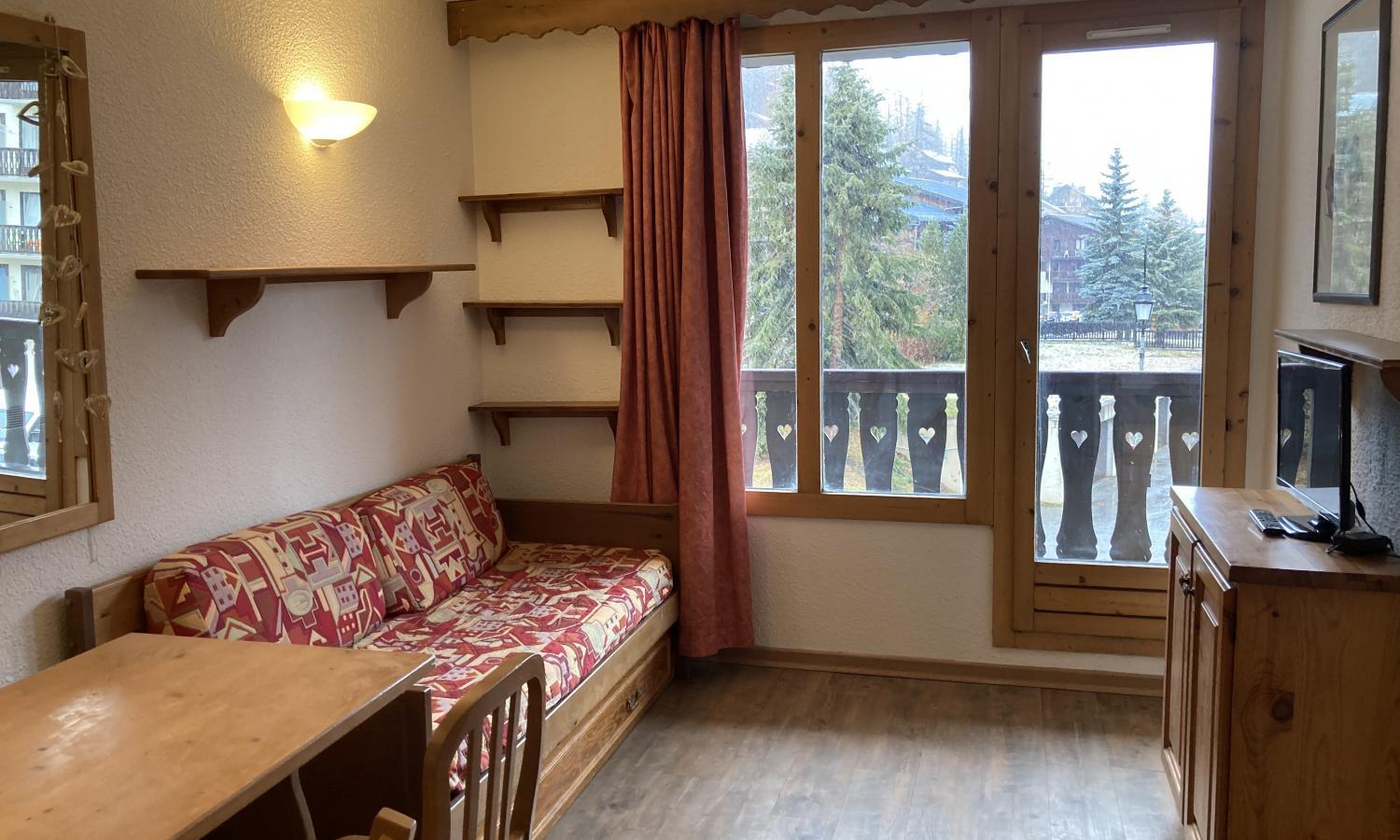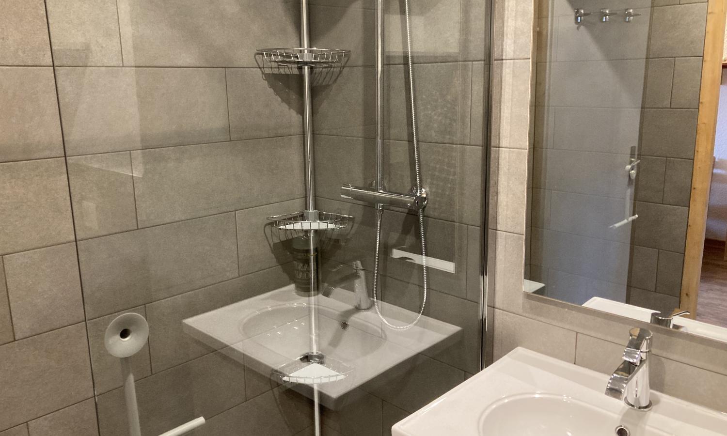 Recently refurbished studio cabine apartment just 5 minutes walk from the centre of Val d’Isere and the main Bellevarde and Solaise lifts. This sweet little apartment is located in the popular Verdets building and has great views from its east facing balcony. The apartment comprises of an open plan living/dining/kitchen with a single sofa bed and a pull out bed with legs, a dining table seating 5 people and a fully equipped kitchen with a small oven, four ring hob, microwave, dishwasher, fridge and kettle.