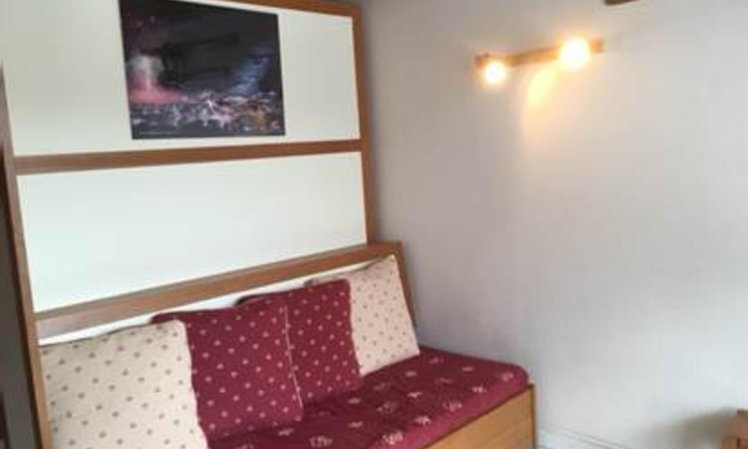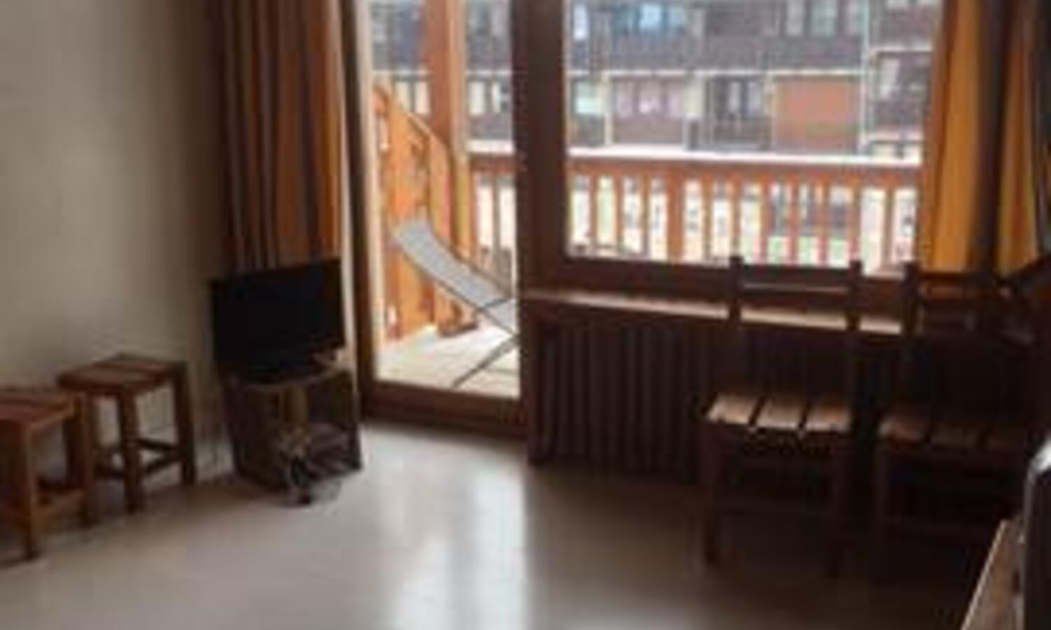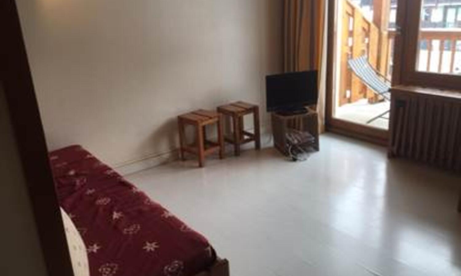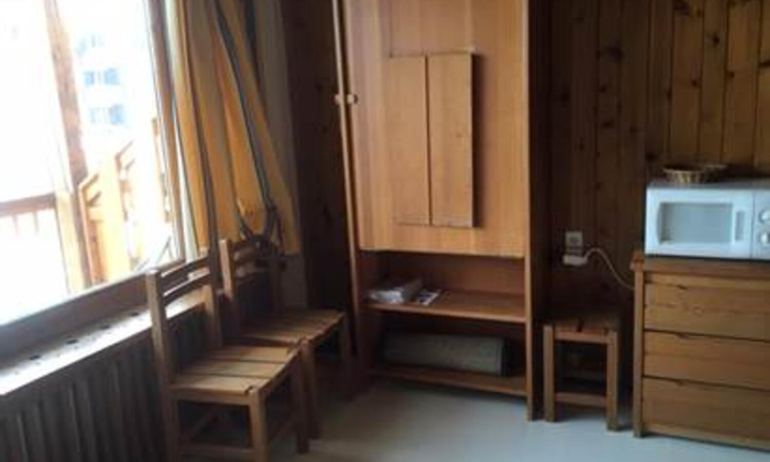 The apartment is a really spacious studio with a large window with door onto the sunny East facing balcony which benefits from fantastic views over the Solaise mountain and nursery slopes.