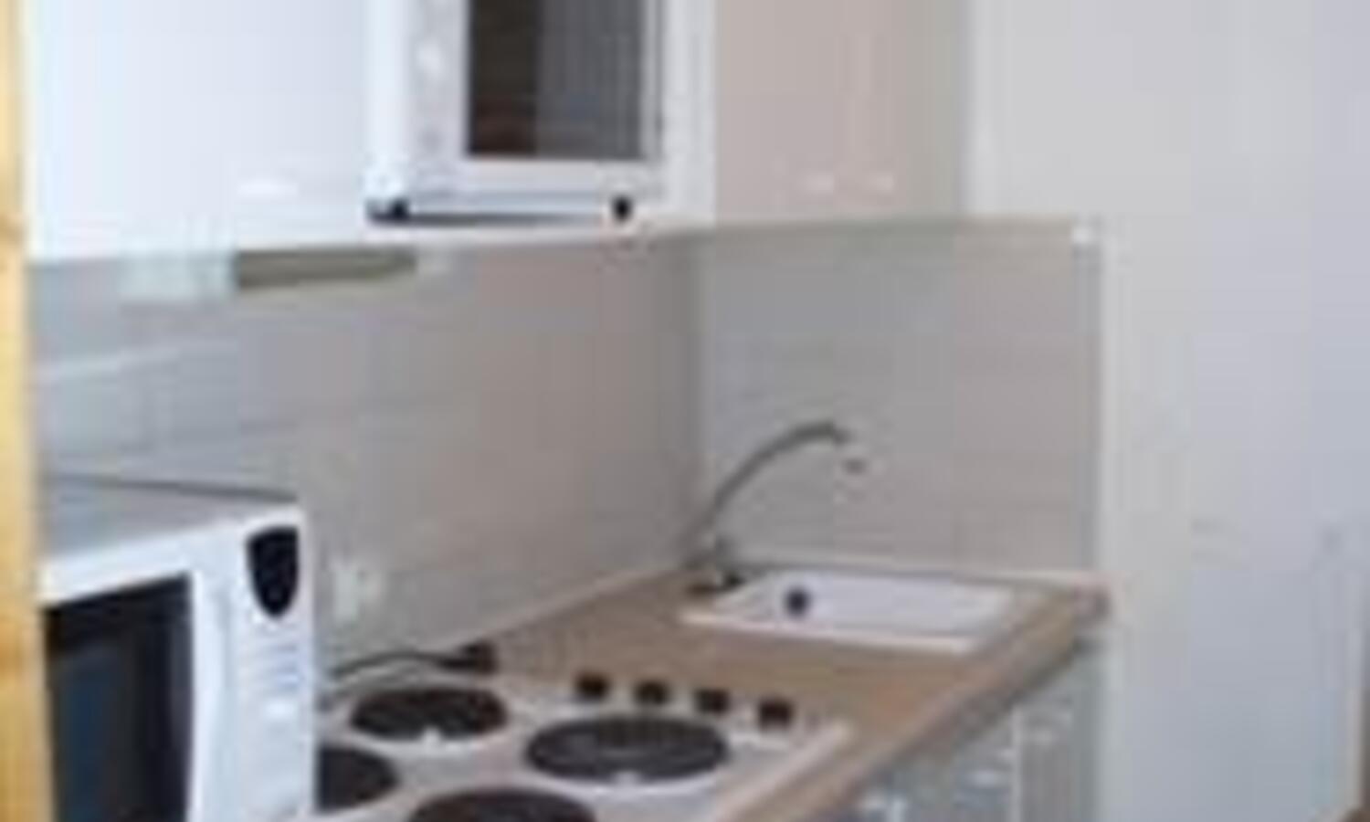 The apartment has a good sized bedroom with a bunk bed wardrobe and chest of drawers and the living area has two single sofa beds with a pull out bed. There is a large south/west facing balcony off the living room which is great for spring sunshine. The living/dining room has a dining table for 4 people and a serving hatch into the kitchen. The kitchen is well equipped with a dishwasher, oven, hob, toaster, kettle and fridge.