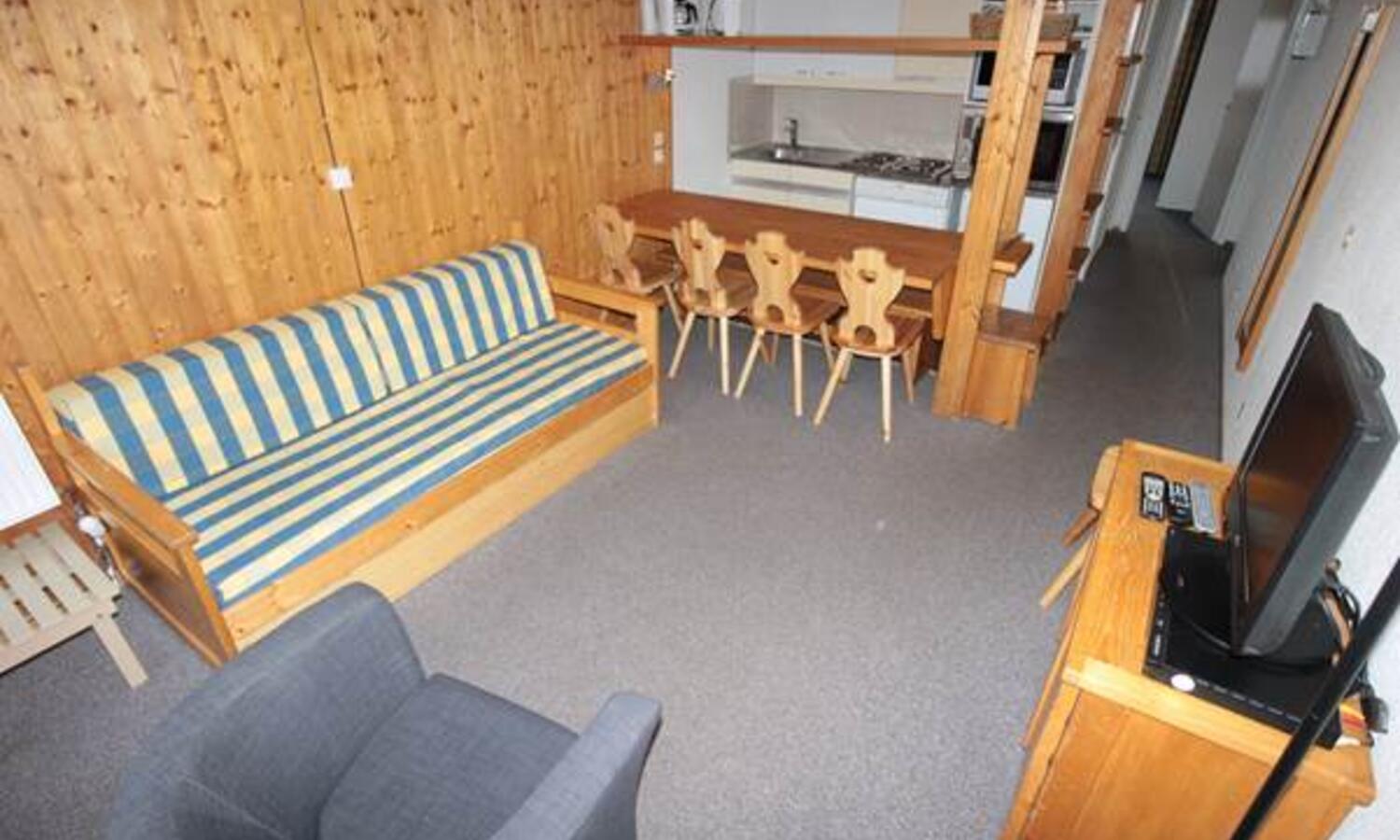 This is a really spacious one bedroom apartment just a short walk from the lifts in la Daille with under cover access to the shops, bars and restaurants.