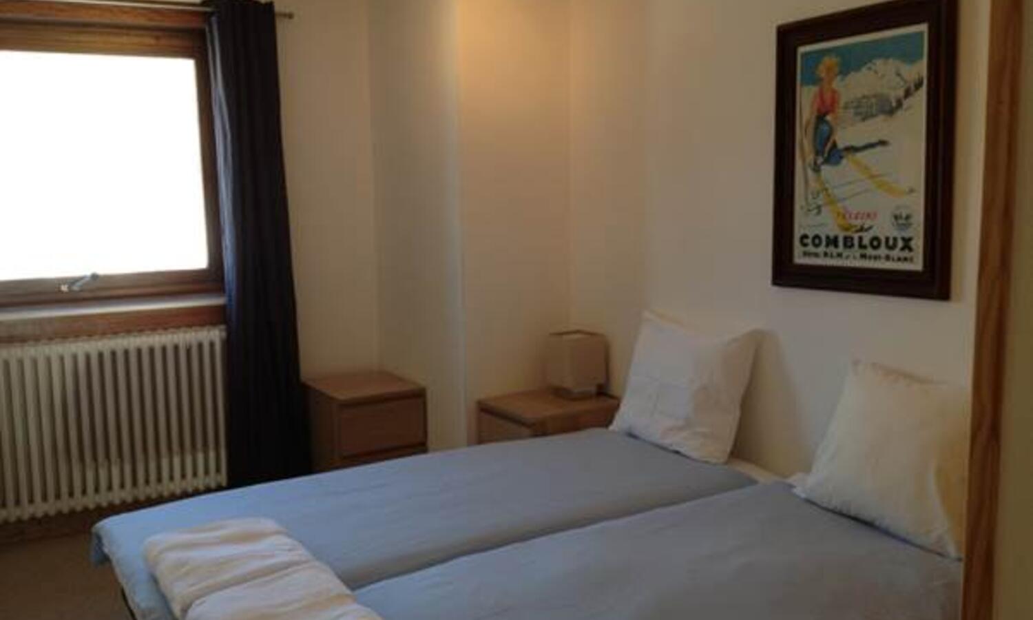 The master bedroom has large wardrobes and twin beds which can make a king sized bed and a large picture window with far reaching views to la Daille and beyond. The second bedroom has twin beds which can also make a double, a wardrobe and chest of drawers. The recently renovated apartment benefits from a large modern bathroom with bath and shower, basin, heated towel rail and WC and there is also a separate WC. The entrance has plenty of space for storing coats and boots and there is a good sized ski locker on the ground floor.