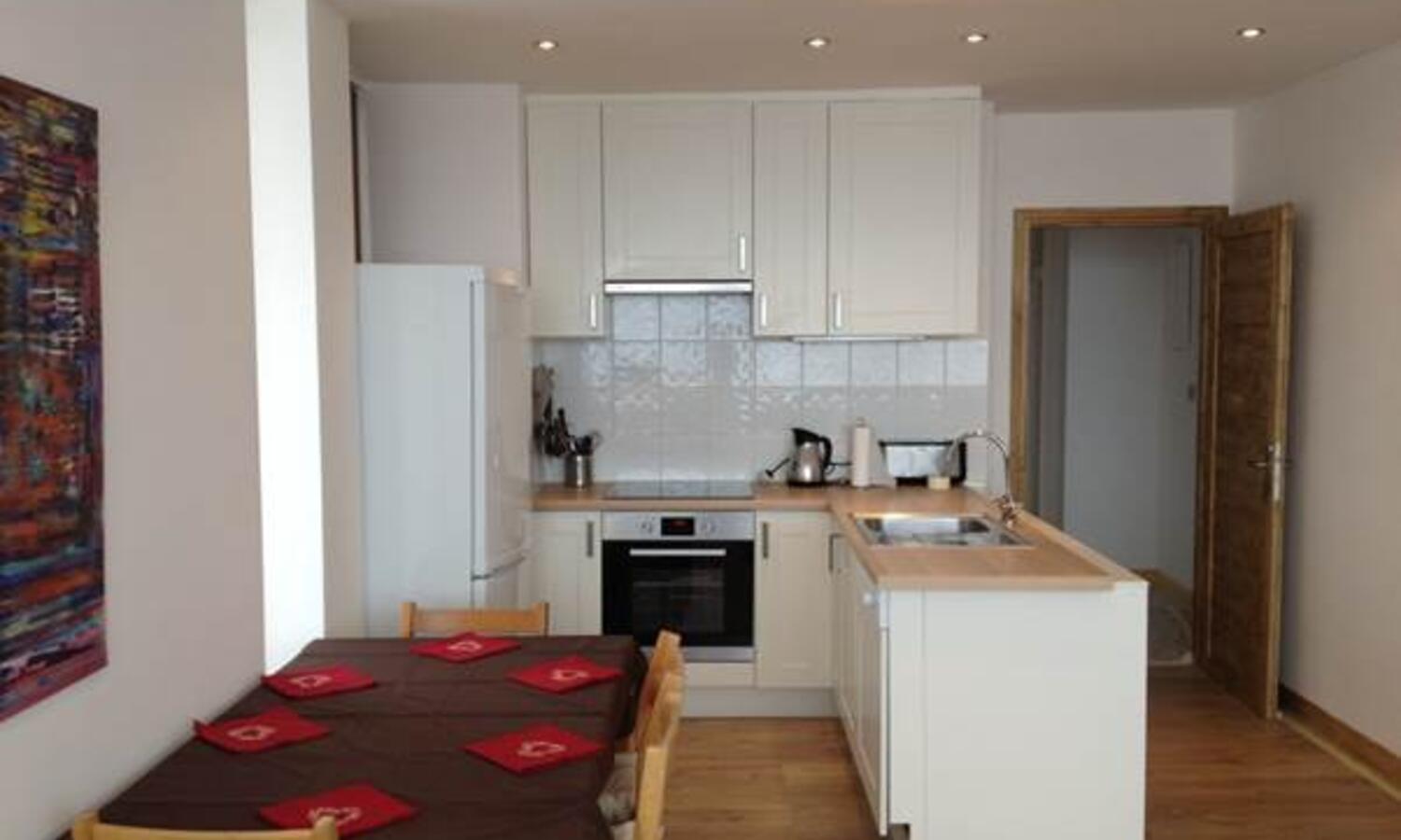 This bright and spacious two bedroom apartment has arguably the best views in Val d’Isere and is conveniently located just 5 minutes’ walk from the centre of Val d’Isere with a bus stop and supermarket just outside the residence.